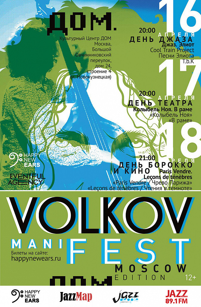VOLKOV ManiFEST – это петербургский фестиваль, который ежегодно собирает под свои знамена различные проекты, в которых участвует музыкант и композитор Владимир Волков. Благодаря тому, что Волков – один из самых разносторонних и постоянно экспериментирующих артистов, Фестиваль превращается в полноценный кроссплатформенный и мульти-культурный проект. Но эти жанровые определения больше нужны искушенным критикам, а для зрителей, наполняющих фестивальные вечера под завязку, это событие прежде всего большой трехдневный праздник музыки, театра, кино, живописи и всех даже пока еще не придуманная и не обозначенных видов искусств.